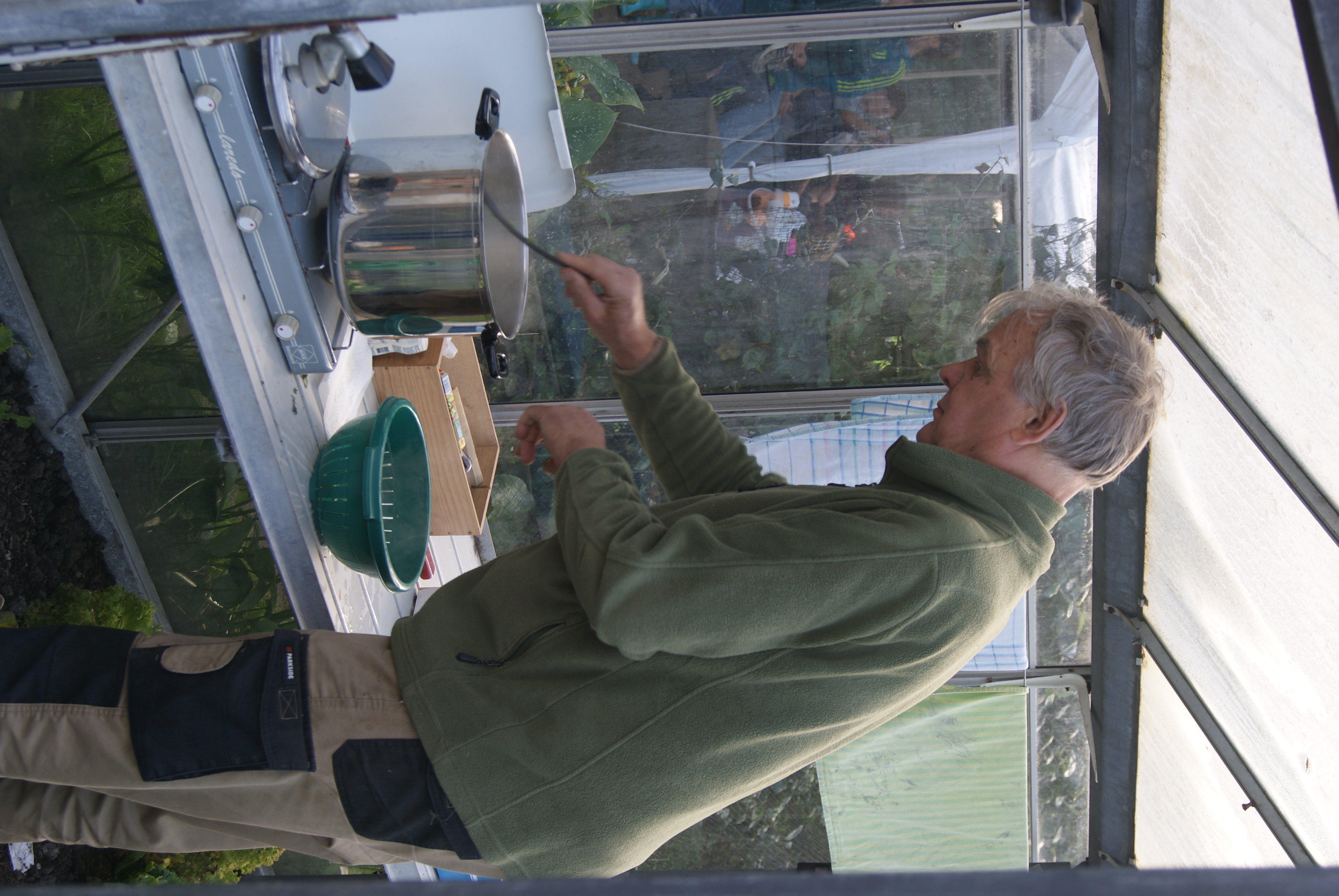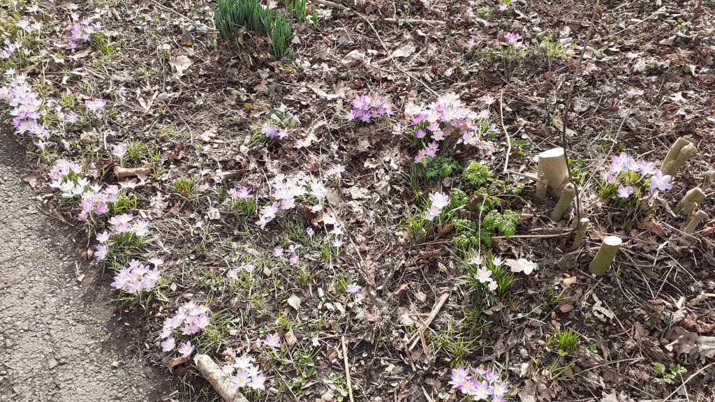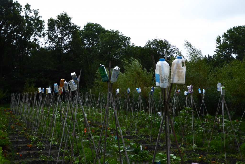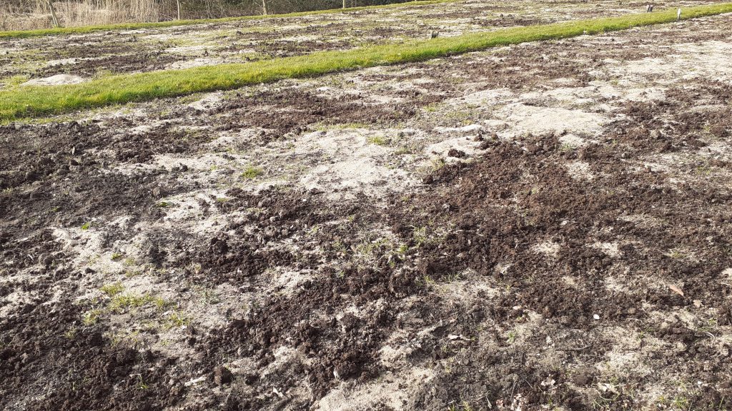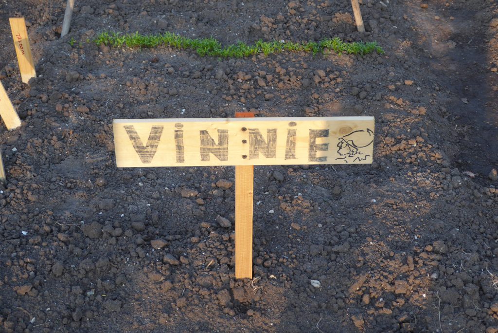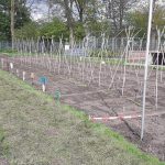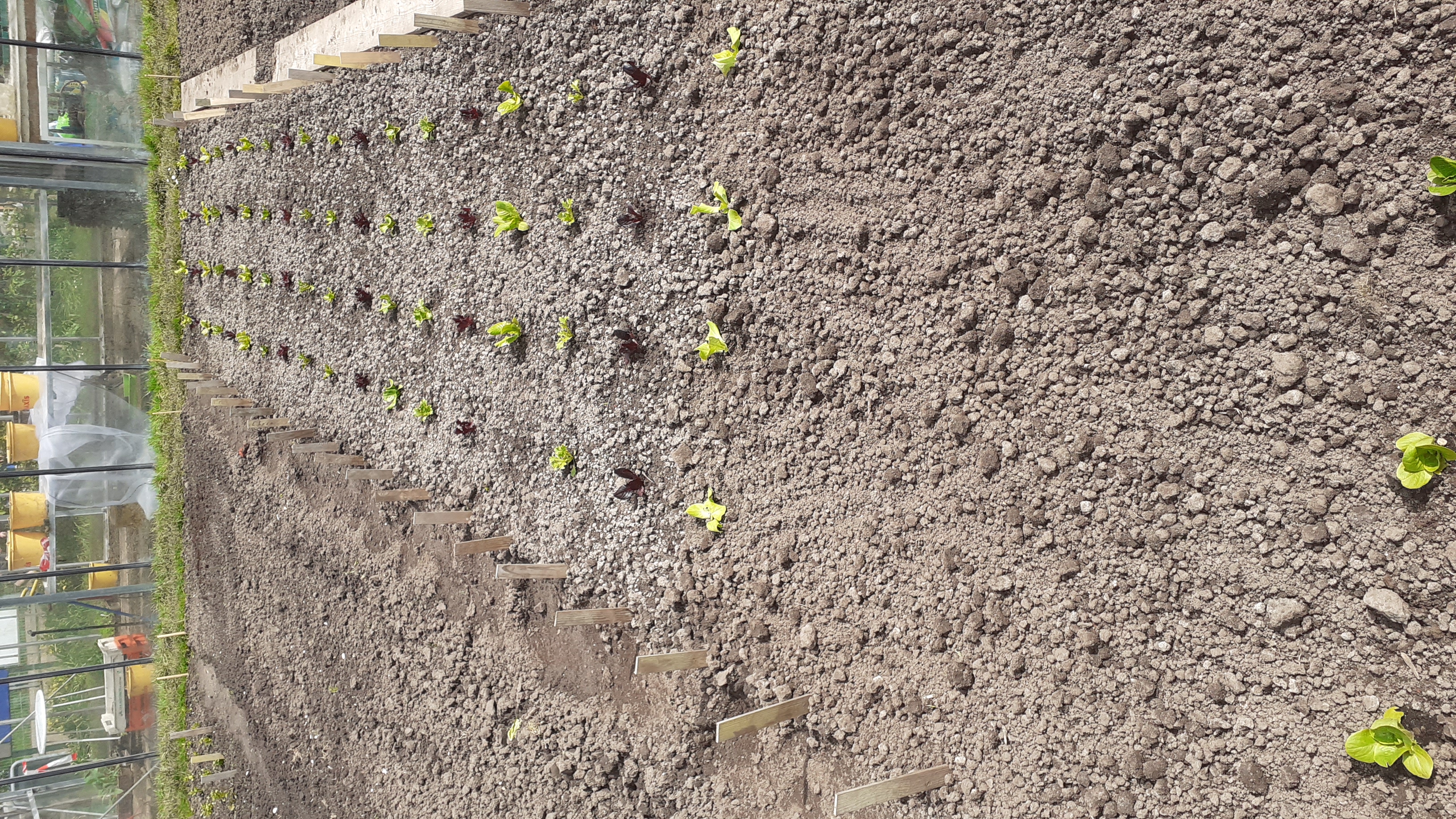 4 april, een prachtige, droge, zonnige lentedag. Dat droge werkt wel een beetje tegen als we kijken naar alles wat gezaaid is. Gelukkig zijn de vrijwilligers druk bezig met gieters om de zaailingen water te geven.