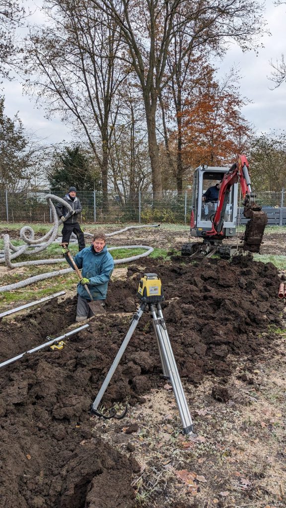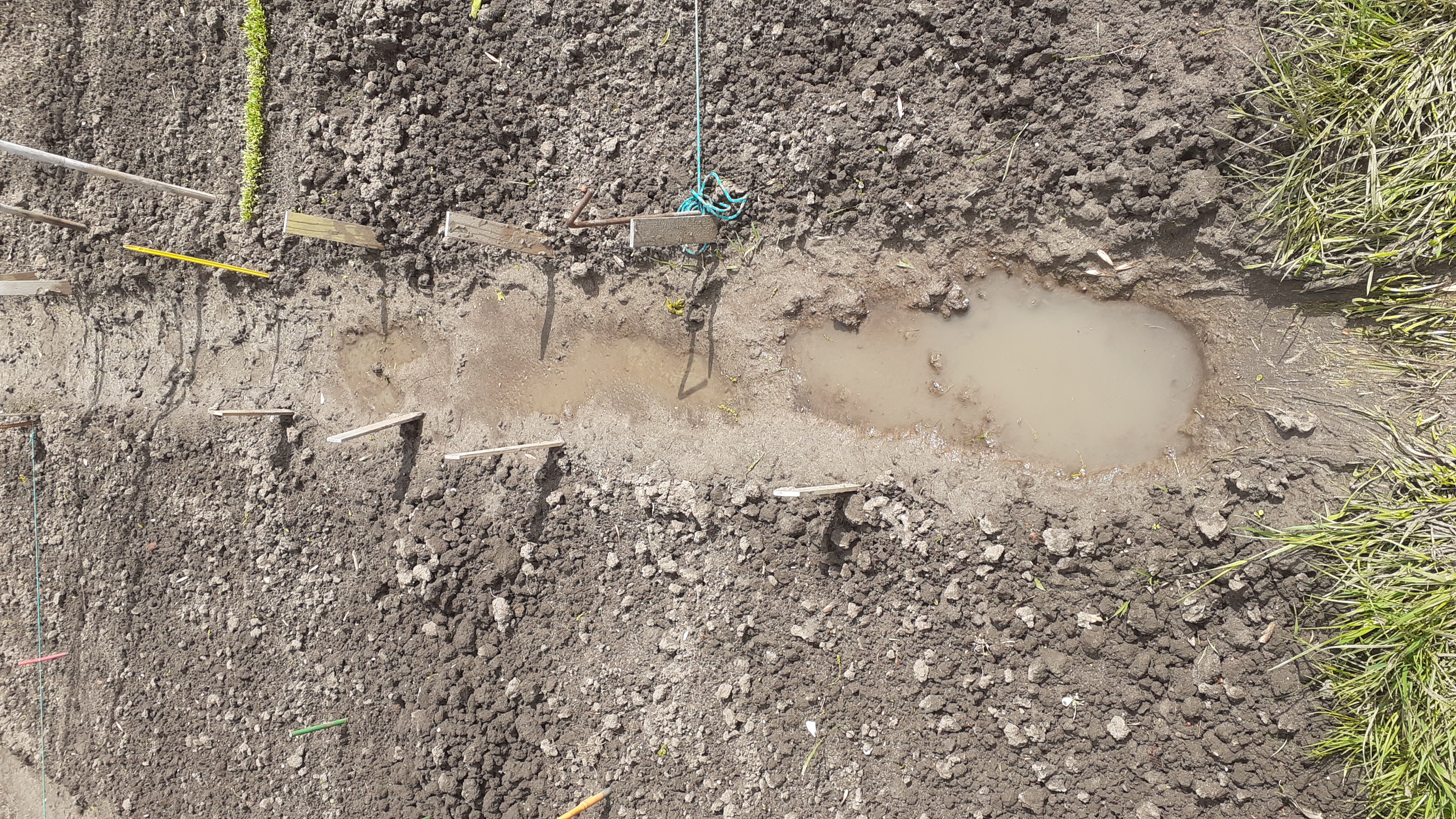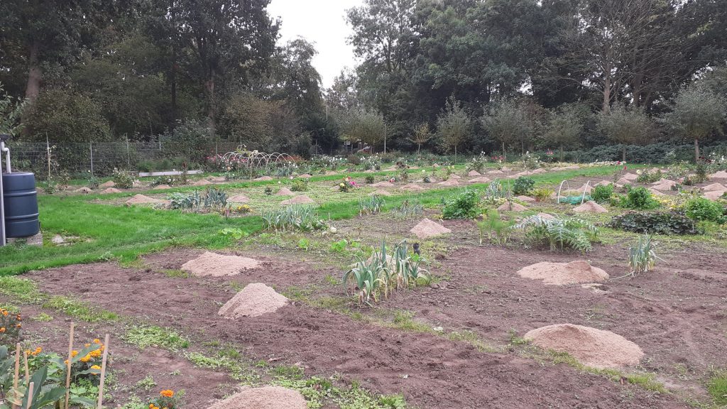 De officiële opening bestaat altijd uit dezelfde handelingen: paadjes trappen. Door de 30 cm brede stroken tussen de tuintjes flink aan te stampen wordt de omtrek van elk tuintje duidelijk zichtbaar.