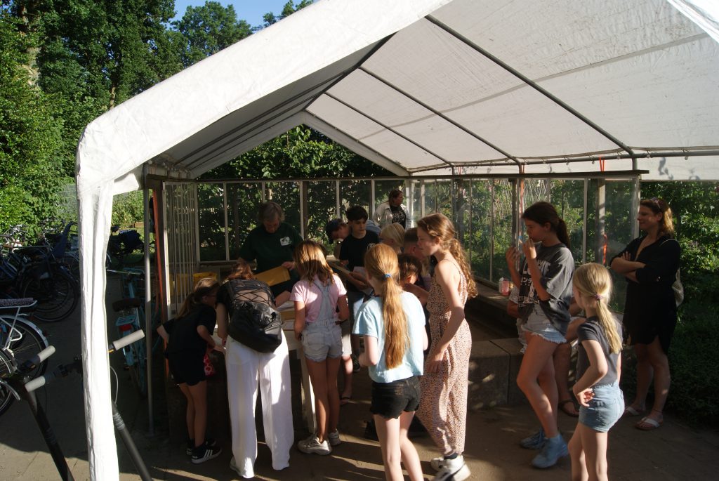 Het is altijd een groot feest. Veel vrijwilligers waren extra gekomen, het Leiderdorps Weekblad maakte foto’s en ook werd er een korte film gemaakt door de Schooltuin Alliantie (https://alliantieschooltuinen.nl).