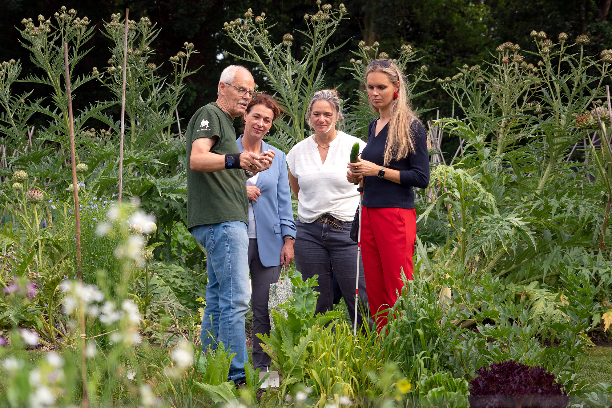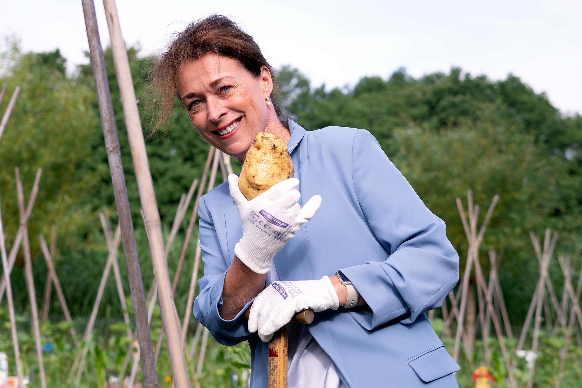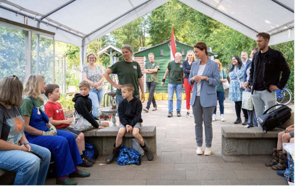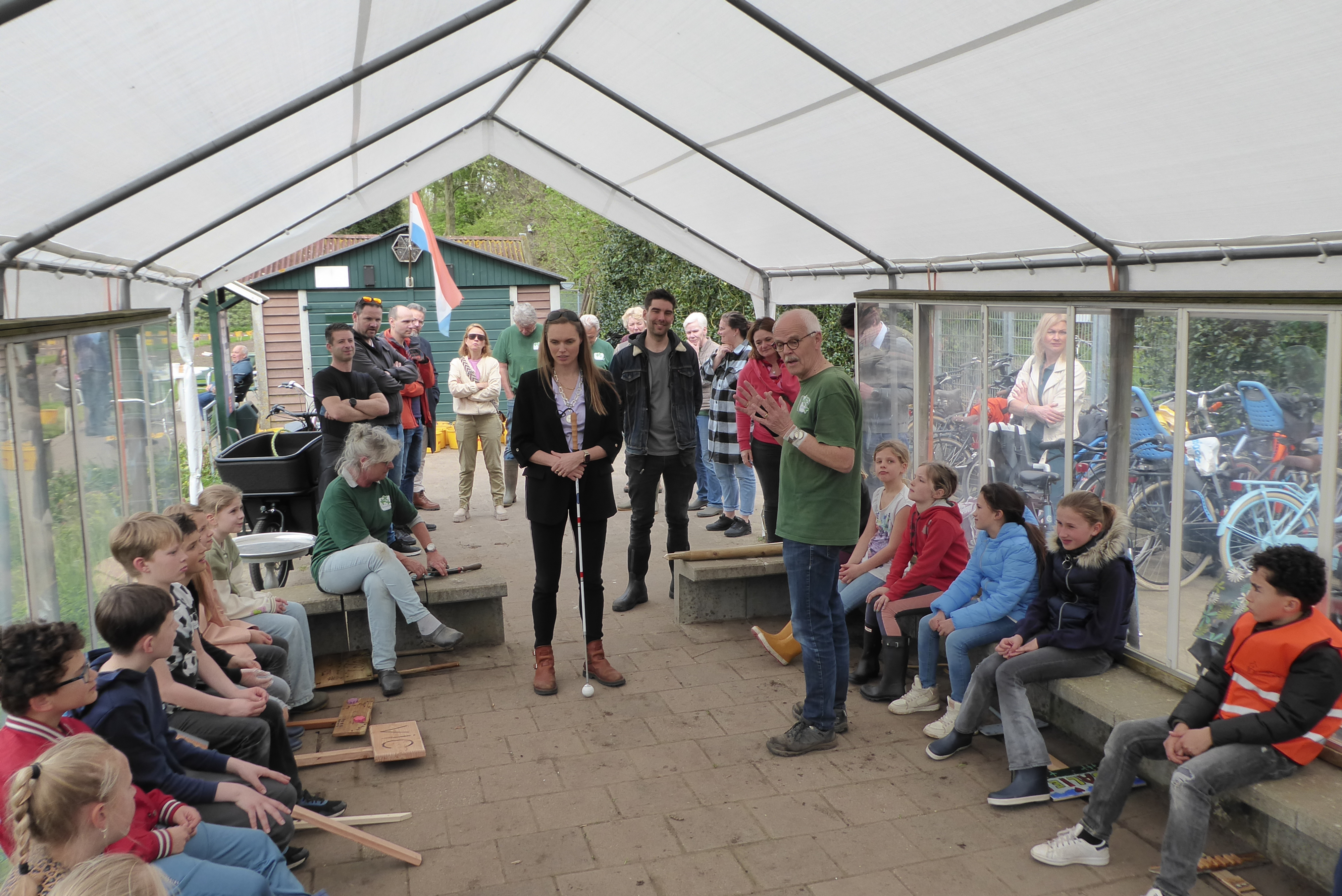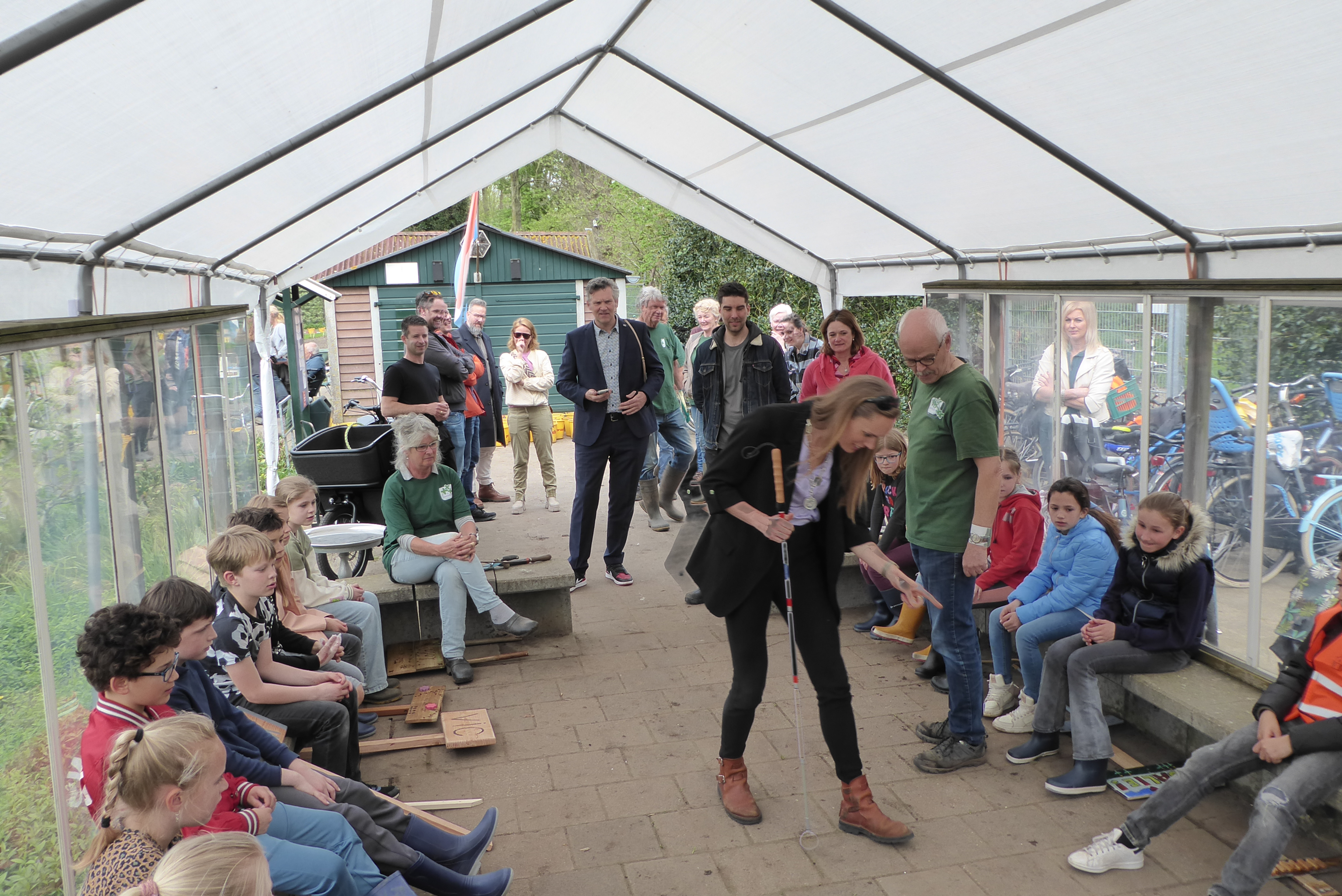 wethouder Gebke van Gaal [meer weten: https://nl.wikipedia.org/wiki/Gebke_van_Gaal] verrichte de officiële schooltuinopening. Elk jaar komt een andere school aan de beurt. Dit jaar was de Prins Willem Alexanderschool de gelukkige.