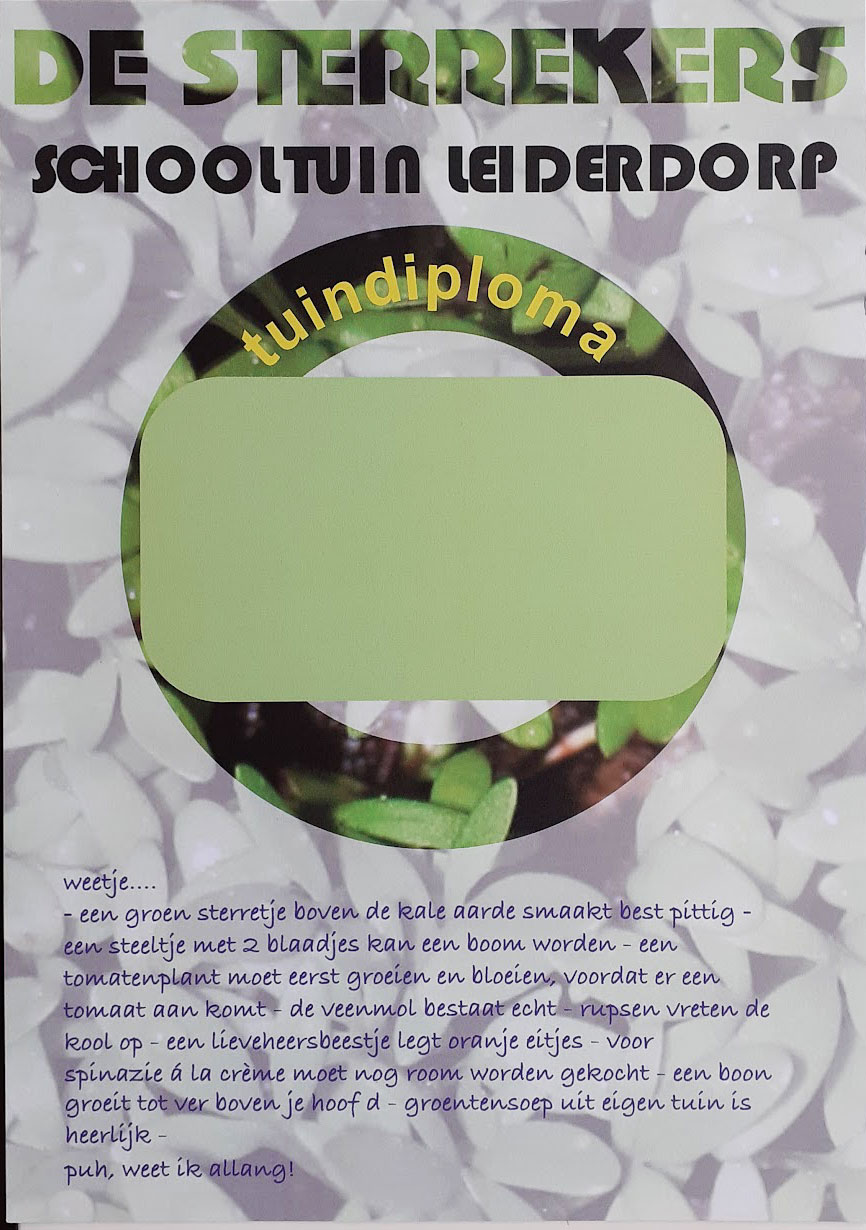 Het is een soort wedstrijd tussen schooltuinen in heel Nederland. Kijk maar eens op de website.