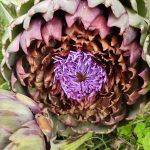 In de algemene tuin beginnen de artisjokken te bloeien. Als het nog geen bloemen zijn kun je ze eten.