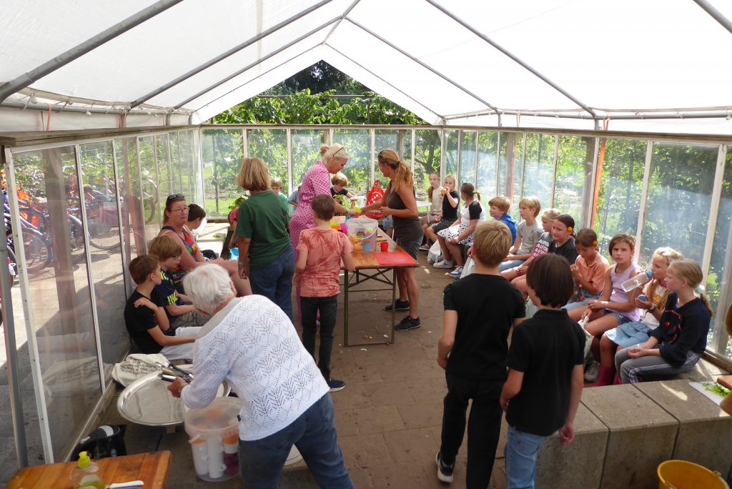 Het zijn de laatste dagen op de schooltuin. Alles is veel harder gegroeid dan vorige jaren. Het is erg warm geweest en de vrijwilligers van de schooltuinen hebben vaak gesproeid. En dan weet je wel hoe hard het gaat.
